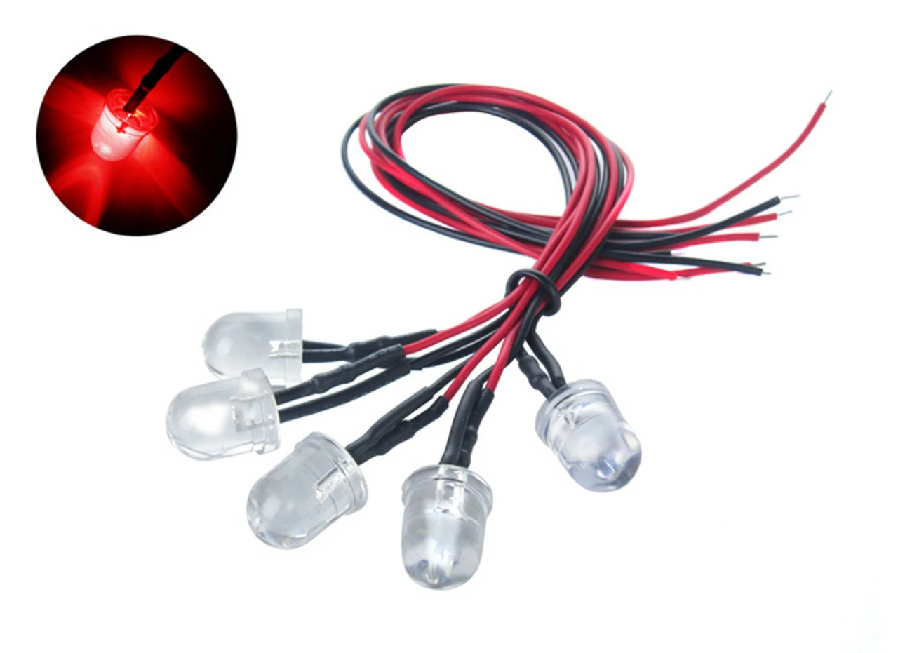 Common Sense RC 5-Pack of Pre-Wired 10mm Bright Red LED Light Bulbs