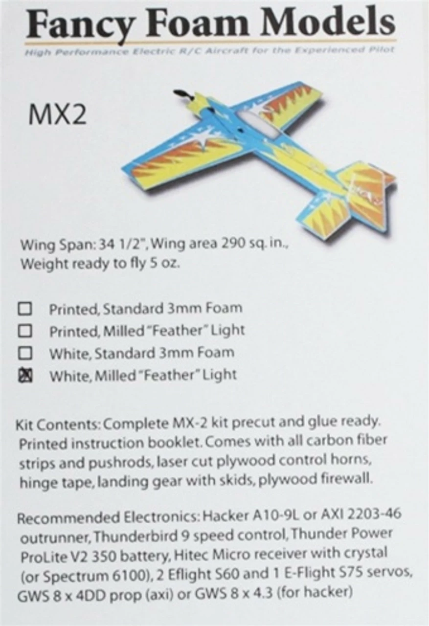 FFMMX2WM FANCY FOAM MX2, White, Milled “feather” light Depron Kit
