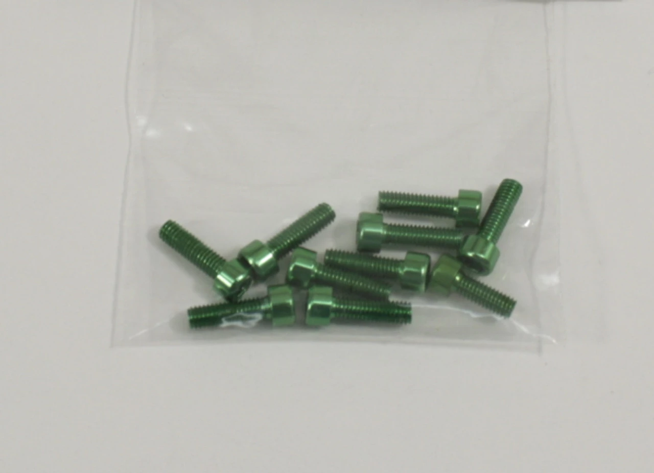 Includes (10) M3x10mm Green Aluminum Screws