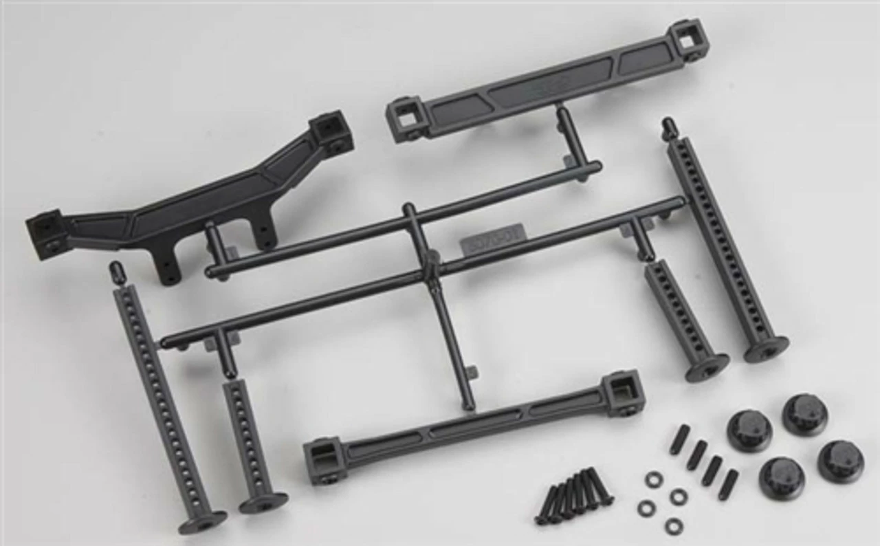 - Adjustable front and rear body mounts allow a wide variety of bodies to be used including rally car bodies