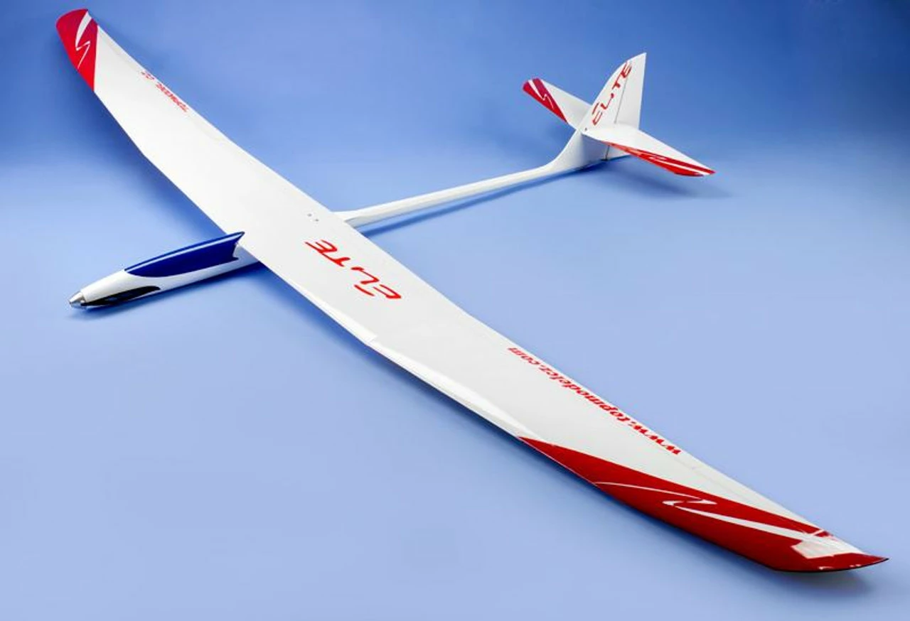 Elite is indispensable for thermal flying. Flaps allow to fly efficiently even in bad weather, make thermals and also works well as airbrakes and thus allow the land to the foot even under the most difficult conditions. Elite will satisfy all those interested who want to enjoy the beautiful flying in thermals. It is characterized by calm and stable gliding. Three-piece wing has a lightweight balsa framework with D-box. The fuselage is made of white gel-coated fiberglass and reinforced with carbon. Two-piece floating elevator is balsa framework with carbon spar and leading edge. The elevator is controlled using a fiberglass control horn. Rudder is controlled by pull-pull system. The drive unit is designed so that it is possible to use 3S lipo battery.