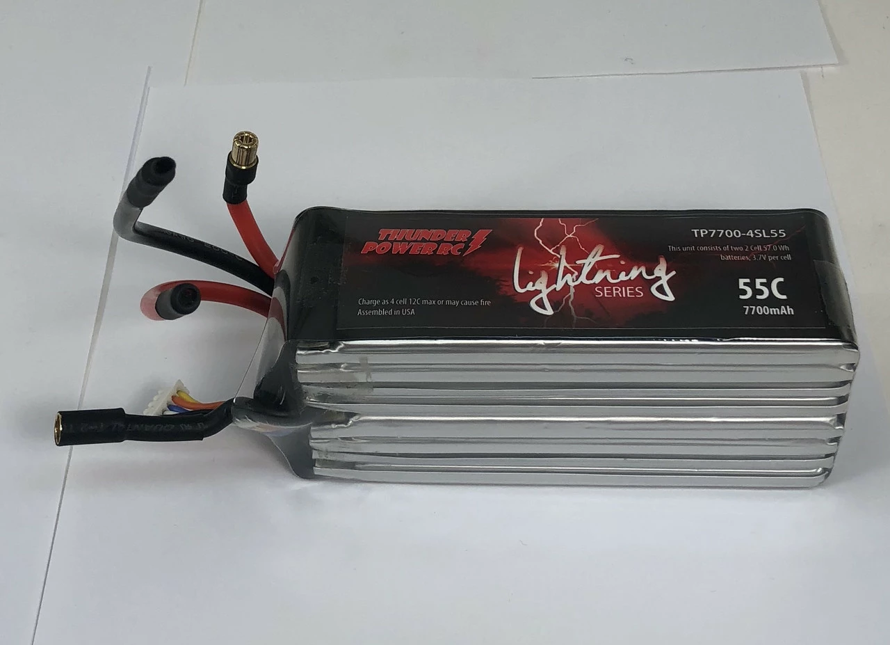 TP7700-4SL55 Thunder Power 7700mAh 4-Cell/4S 14.8V Lightning Series 55C LiPo, Split w/Interconnect