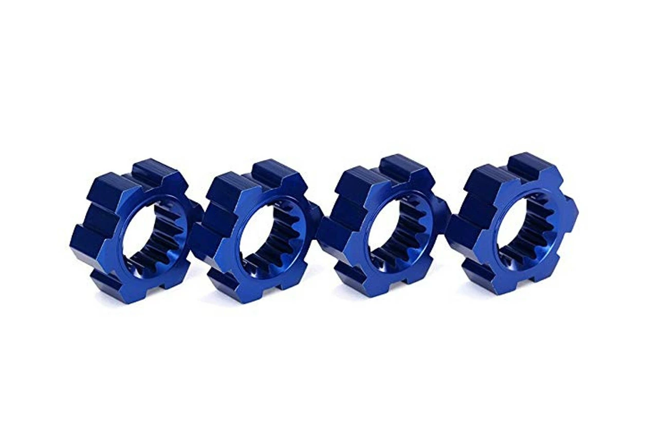 This is a pack of four optional Traxxas X-Maxx Aluminum Wheel Hex Hubs in Blue anodize. These aluminum hexes replace the stock plastic hexes with the ruggedness and good looks of aluminum alloy metal.